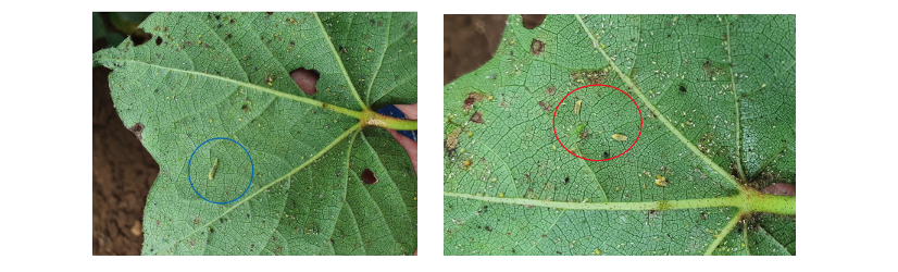 Host preference field studies conducted by Dr Brian Thistleton and his team at the Department of Primary Industries and Resources in the NT also found no evidence for FAW moths laying eggs in in field grown cotton plots, however their study did show that FAW could feed and develop on conventional cotton when confined within containers in the lab without alternate host choices.
