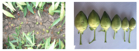 Parrot Beaked Bolls – Small bolls with uneven seed numbers between the locks caused by poor pollination /seed set particularly in one lock. High temperatures reduce the viability of the pollen at flowering. This reduces boll size and can reduce yield. There are no known studies to show if the plant compensates for parrot beak bolls by having other normal bolls grow bigger.