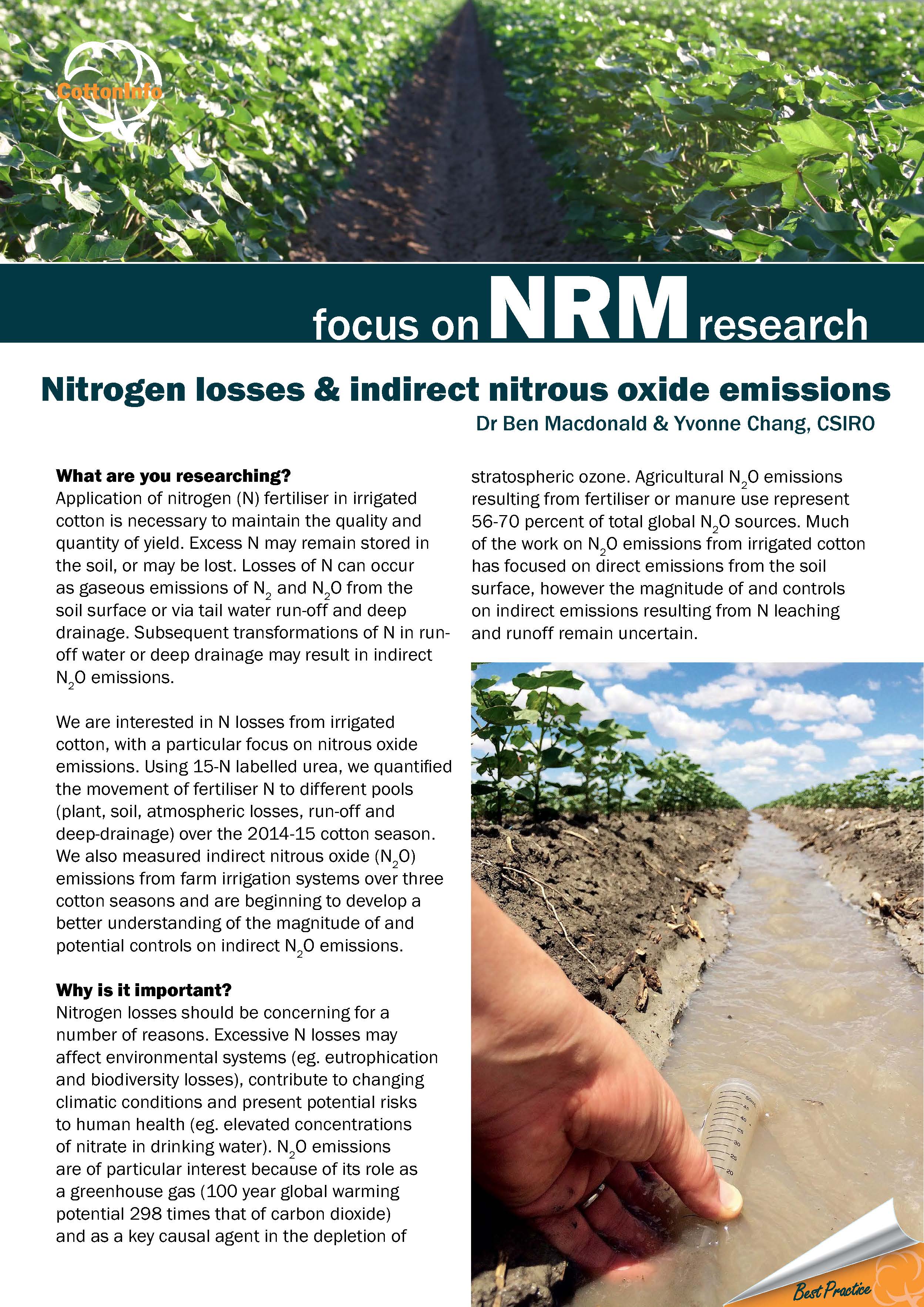The Focus on NRM research series introduces you to the key cotton NRM researchers and their work. In this case study, Dr Ben Macdonald and Yvonne Chang outline their research into nitrogen losses & indirect nitrous oxide emissions.