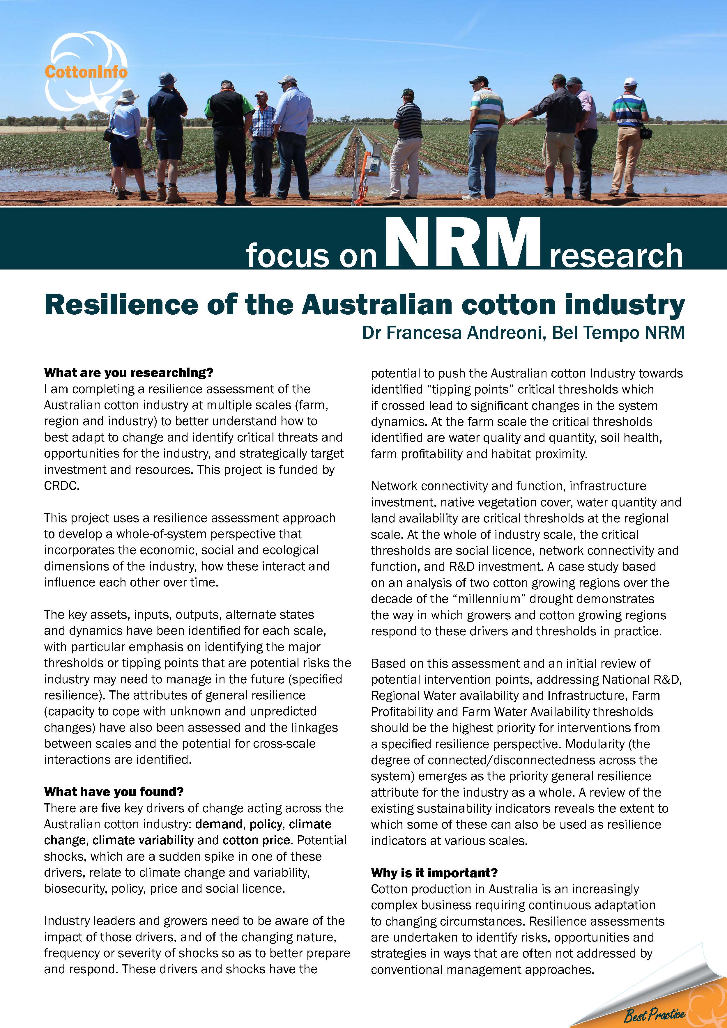 The Focus on NRM research series introduces you to the key cotton NRM researchers and their work.