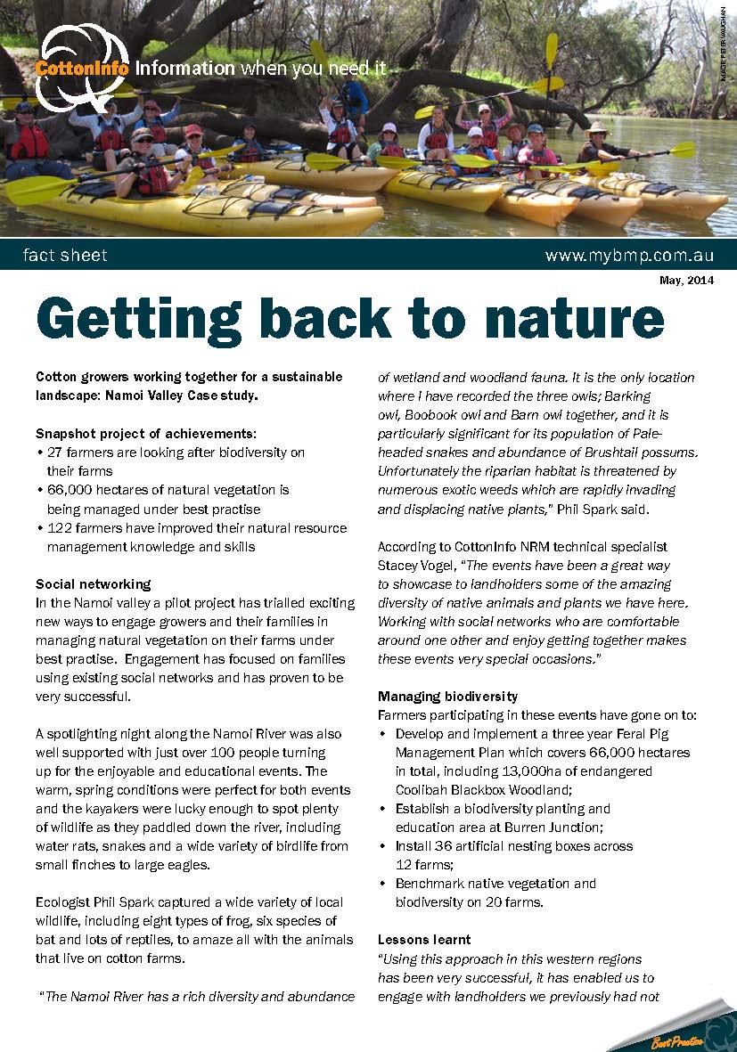 Under the 'Cotton growers working together for a sustainable landscape' project, a series of case studies have been developed. This case study outlines the work of the Mungindi Area Wide Management Group in benchmarking biodiversity.