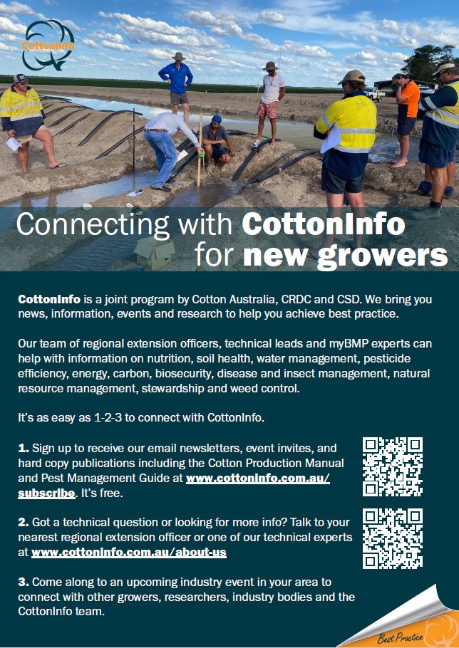 This fact sheet introduces the CottonInfo team for new cotton growers.