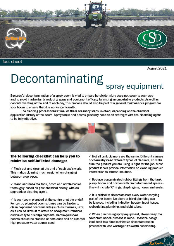 This fact sheet provides tips and information on cleaning and decontaminating spray equipment, especially ground rigs.