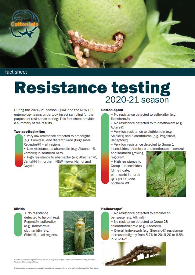 During the 2020/21 season, QDAF and the NSW DPI entomology teams undertook insect sampling for the purpose of resistance testing. This fact sheet provides a summary of the results.