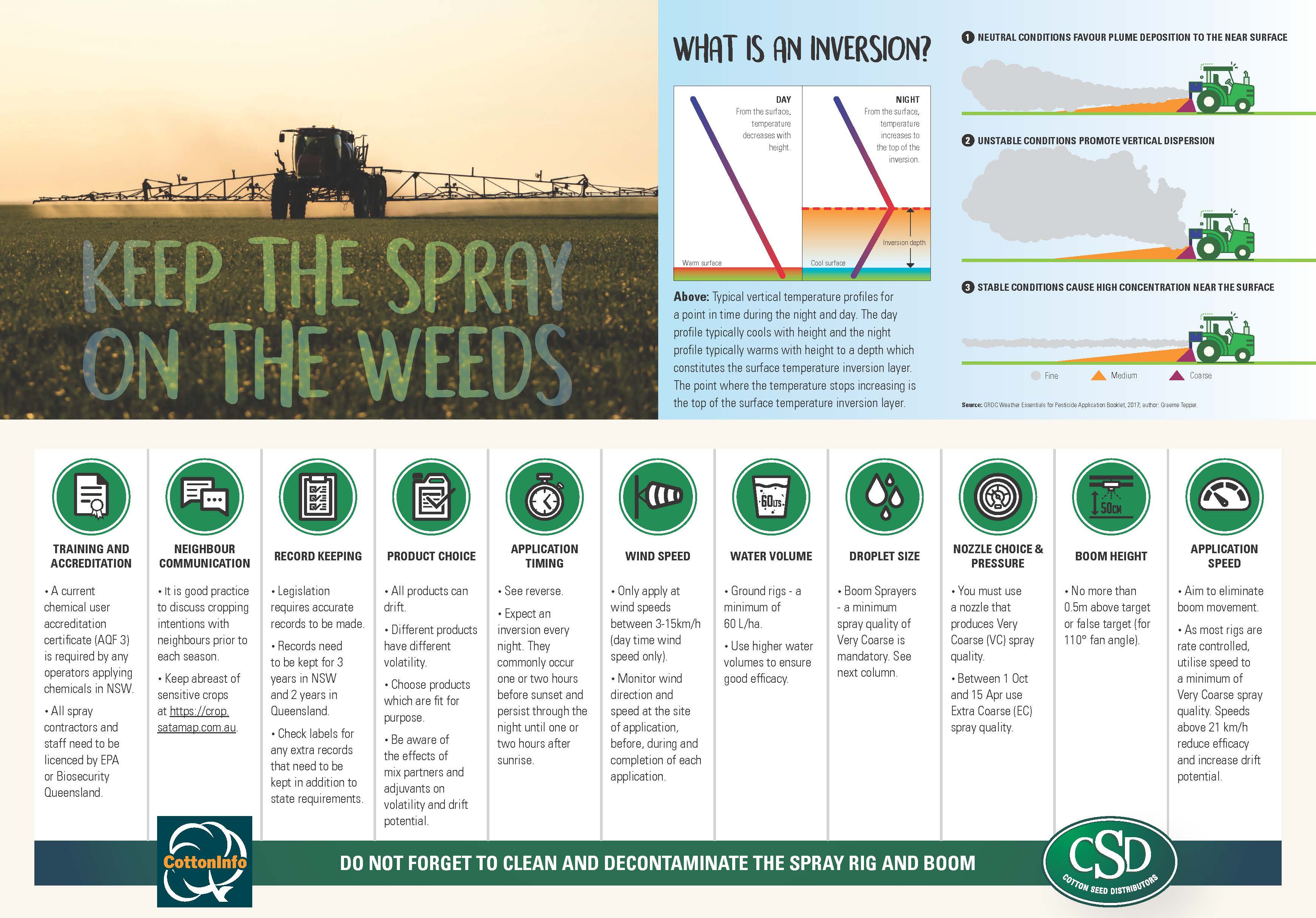 A fact sheet outlining the steps to take to keep the spray on the weeds. (Updated 2023)