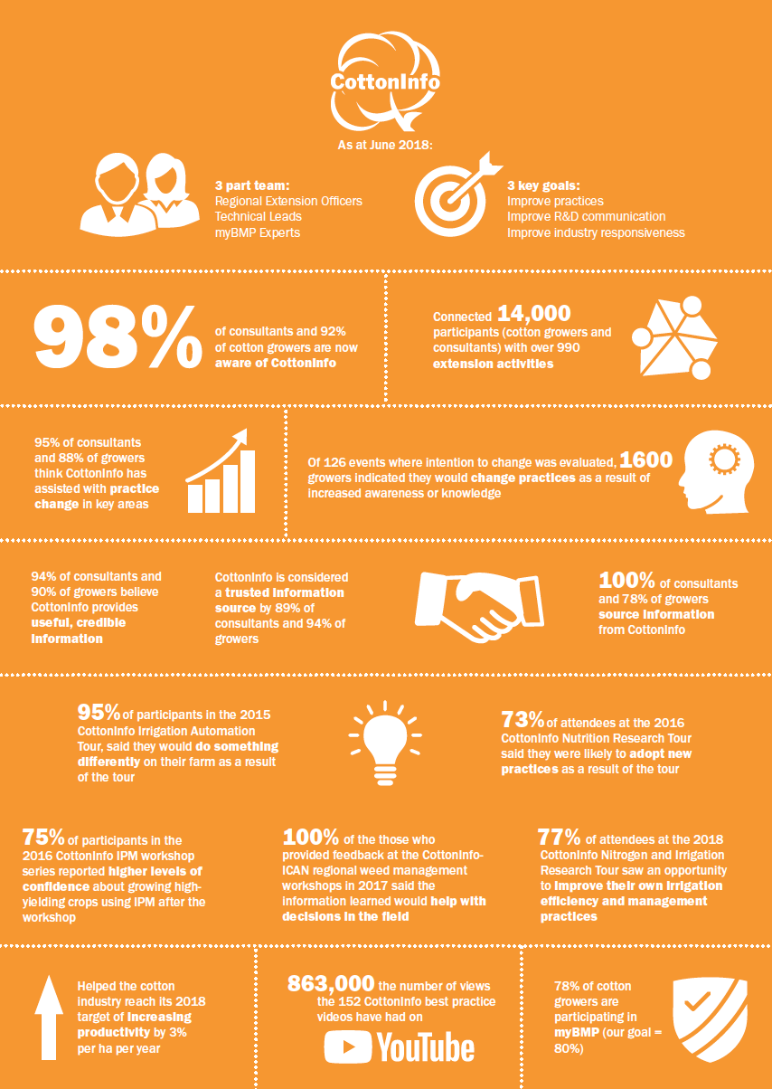 CottonInfo was formed in 2012, and 2018 marked the end of our first Strategic Plan. In this fact sheet, we discover the impact of CottonInfo during its first six years.