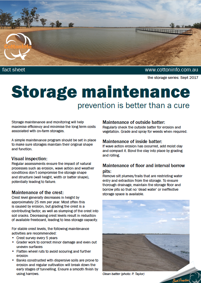 Storage maintenance and monitoring will help maximise efficiency and minimise the long term costs associated with on-farm storages.