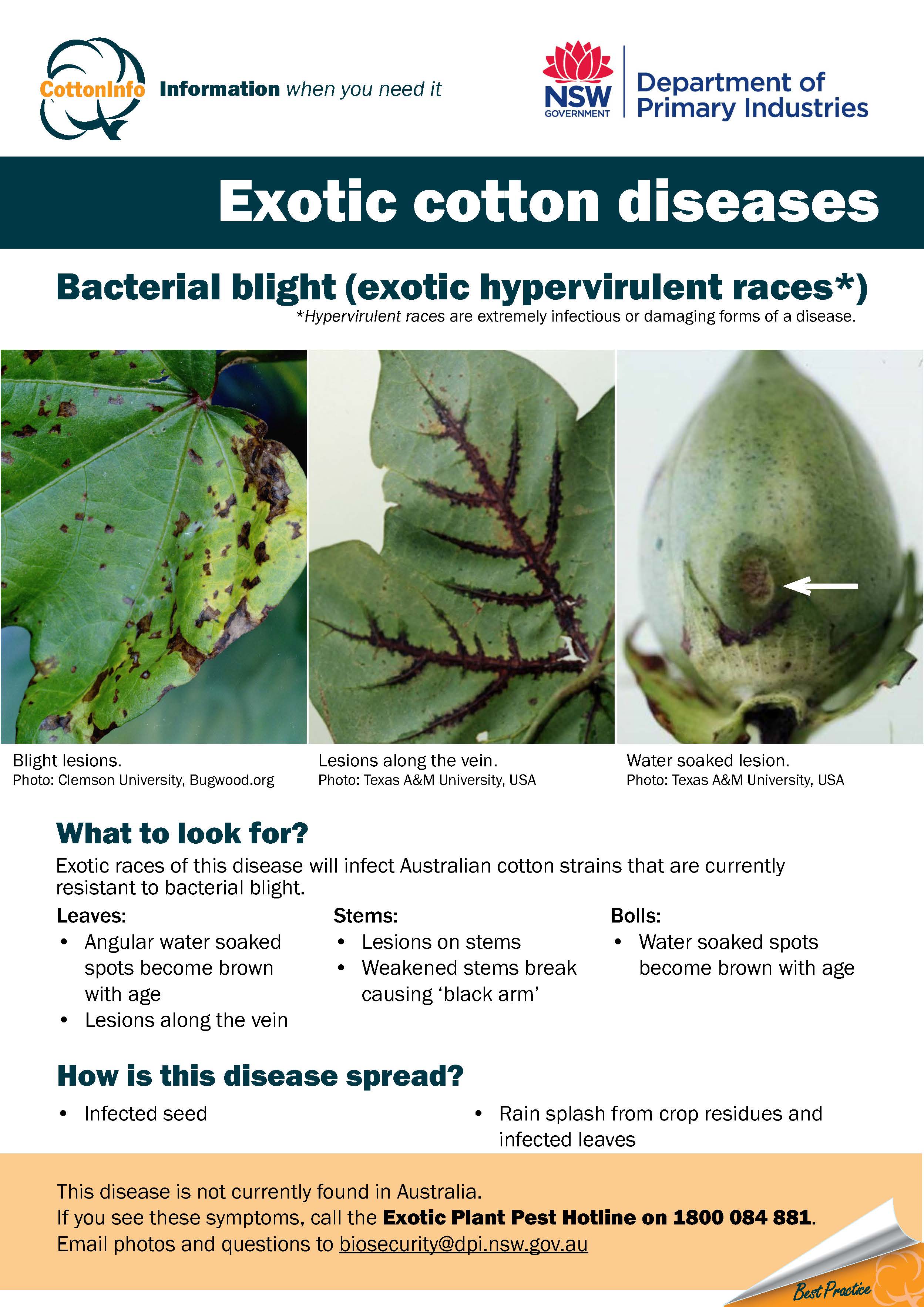This series from CottonInfo and NSW DPI outlines exotic cotton pests and diseases, including key information on what to look for, how the pest or disease is spread, and what to do if you suspect it on your farm.