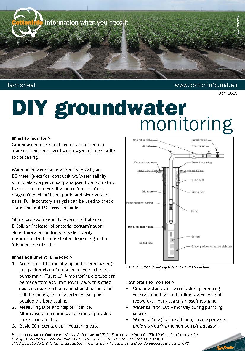 This fact sheet investigates DIY groundwater monitoring: what to monitor, what equipment is needed, how often to monitor and what to do with the data.