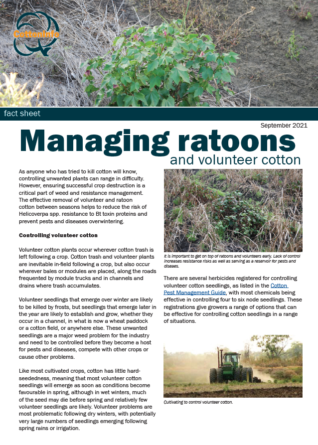 The control of unwanted cotton in the farming system is an essential part of good integrated pest and disease management.