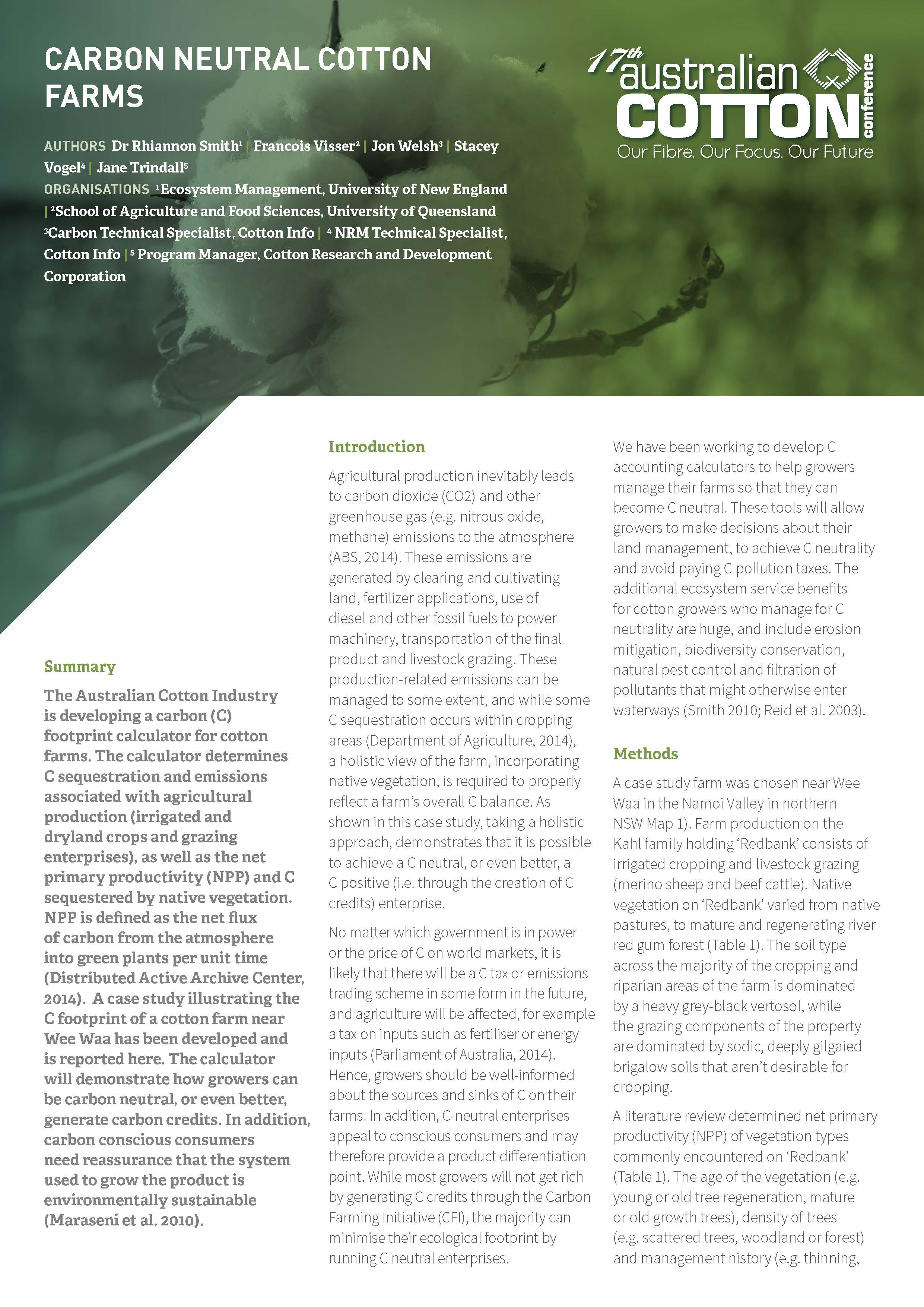 The CottonInfo team, along with researchers, developed this paper for the 17th Australian Cotton Conference in 2014.