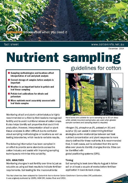 This fact sheet provides growers with guidelines for monitoring soil and plant nutrient status.