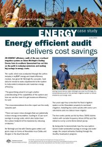 An energy efficiency audit of the new overhead irrigation system on Adam McVeigh’s Darling Downs farm in southern Queensland has set him on the path to reducing emissions and making big savings in energy costs.