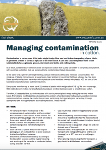 Contamination in cotton, even if it’s just a single foreign fibre, can lead to the downgrading of yarn, fabric, or garments, or even to the total rejection of an entire batch. It can also cause irreparable harm to the relationship between growers, ginners, merchants and textile and clothing mills.