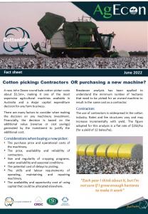A new John Deere round bale cotton picker costs about $1.3m+, making it one of the most expensive agricultural machines available in Australia and a major capital expenditure decision for any farm business. This fact sheet examines the economics behind the decision-making.