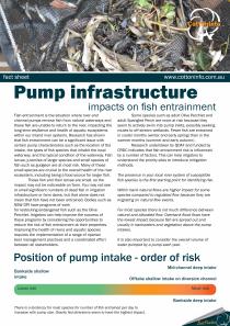 Fish entrainment is the situation where river and channel pumps remove fish from natural waterways and these fish are unable to return to the river, impacting the long-term resilience and health of aquatic ecosystems within our inland river systems. This fact sheet talks about mitigation considerations for irrigators.