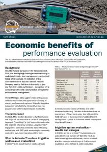 This case study looks at on-farm irrigation efficiency analysis conducted using Irrimate equipment. Irrimate is an assortment of electronic tools to measure water on and off fields, and water advancement timing. The data collected enables an assessment of how much water has infiltrated the field, which can be used to simulate different manageent options to minimise losses and improve irrigation efficiency.