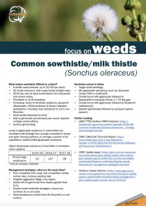 This fact sheet looks at Common sowthistle/milk thistle (Sonchus oleraceus) and its associated management strategies. Download this fact sheet here.